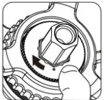 ![]() | 3. Vratite nazubljenu maticu natrag (strana s točkom okrenuta prema gore). |