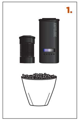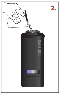 1. MJEŠAVINA – upotrijebite ravnu mjericu zelenog graha. [Koristite priloženu mjericu.] Inače izmjerite 120–160 mℓ ili 90–120 g. Nemojte preopteretiti. Ako koristite monsun ili bezkofeinski grah, manje su guste i preporučuje se da ih utovarujete po težini] |